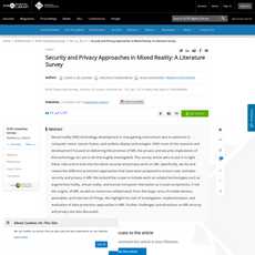 1. This article reviews the security and privacy approaches in Mixed Reality (MR) technology.