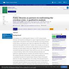 1. This article discusses the role of public libraries as partners in addressing the overuse crisis, specifically focusing on drug abuse.