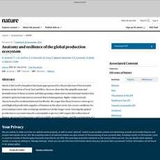 The article “Anatomy and resilience of the global production ecosystem” by Nature provides an overview of how human activities are transforming Earth’s biomes into a Global Production Ecosystem (GPE). The article discusses how this transformation affects the dynamics and resilience of the GPE, and suggests ways to foster innovation and encourage new partnerships to motivate transformation towards a more sustainable GPE.