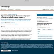 3. This article proposes terpene green solvents from renewable feedstocks as an alternative for high-performing OE devices with reduced toxicity and carbon footprint.
