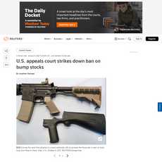 1. A U.S. appeals court has struck down a rule adopted by the Trump administration following a 2017 Las Vegas mass shooting that banned "bump stocks," devices that allow people to rapidly fire multiple rounds from semi-automatic guns.