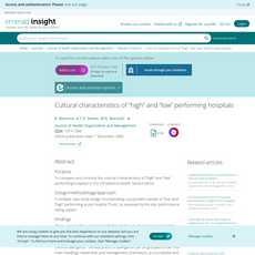 总结:该研究比较了英国NHS中“高”和“低”绩效医院的文化特征,并发现了在领导和管理取向、责任和信息系统、人力资源政策以及与当地卫生经济的关系等方面存在显著差异。这些结果强调了组织文化与医院绩效之间的关联,并突出了英国NHS医院之间的文化差异。