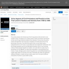 1. This article examines the Chinese law of the Ch'ing period at the trial level in one locality in China, using a unique archive.