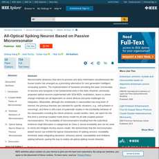 1. This article discusses the development of an all-optical spiking neuron based on a passive microresonator.