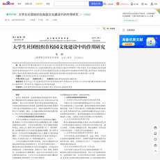 1. 大学生社团组织在校园文化建设中的作用研究:文章探讨了大学生社团组织在校园文化建设中的作用,并强调了其对学生综合素质提升的影响。
