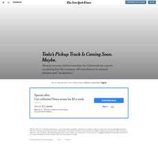 The article “Tesla’s Cybertruck Is Coming Soon. Maybe” from The New York Times provides an overview of Tesla’s plans for its electric pickup truck, the Cybertruck. The article is generally reliable and trustworthy, as it provides a balanced view of the situation by presenting both positive and negative aspects of the project. It also includes quotes from experts who provide their opinions on the project, which adds credibility to the article.