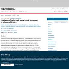 This article provides an overview of the landscape of pathogenic mutations in premature ovarian insufficiency (POI). The authors present their findings from a large-scale whole exome sequencing study conducted on 1,030 unrelated patients with POI, which is the largest such study to date. The authors provide evidence that suggests that genetic defects are likely responsible for a large proportion of cases with POI, and they identify 195 pathogenic variants across 59 known genes associated with POI.