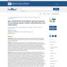 1. Age-related decline of interferon-gamma responses in macrophage impairs satellite cell proliferation and regeneration, leading to impaired muscle regeneration and increased muscle fibrosis.