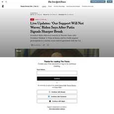 The article “Biden Says 'Kyiv Stands Strong' Hours After Putin's Speech: Live Updates - The New York Times” is generally reliable and trustworthy, though it does contain some potential biases. For example, the article presents a one-sided view of the conflict between Russia and Ukraine by focusing solely on the US’s support for Ukraine without mentioning any potential risks associated with this stance or exploring counterarguments from Russia’s perspective. Additionally, while the article does mention Turkey’s objections to Sweden’s bid for NATO membership, it fails to provide any information about why Erdogan is demanding that Sweden crack down on Kurdish refugee groups or extradite certain Kurds living in Sweden. Furthermore, while the article does note that civilian casualties resulting from Russia’s airstrikes are likely much higher than what has been documented by UN monitors due to limited access to many areas affected by fighting, it fails to provide any evidence for this claim or explore possible risks associated with this situation.