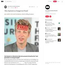 The article titled “Alex Epstein is a Dangerous Fraud” by Chris Jeffries Homeless Romantic published in Jan 2023 on Medium is an opinion piece that presents a one-sided view of Alex Epstein's views on fossil fuels and climate change. The article does not present any evidence or counterarguments to support its claims, nor does it explore any potential risks associated with Epstein's views or provide any alternative perspectives.