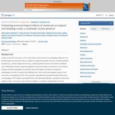 2. This systematic review protocol aims to systematically review the evidence on the ecotoxicological effects of chemicals on tropical reef-building corals.
