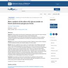 1. A meta-analysis of 126 clinical studies was conducted to assess the effect of β-glucan consumption from oats and barley on blood cholesterol, triglyceride/triacylglycerol (TGL/TAG) levels, and blood glucose levels in humans.