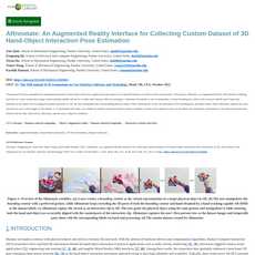 The article “ARnnotate: An Augmented Reality Interface for Collecting Custom Datasets for 3D Hand-Object Interaction Pose Estimation” is a reliable source of information about the use of augmented reality (AR) interfaces to collect custom datasets for 3D hand-object interaction pose estimation. The authors provide evidence from user studies that demonstrate the system’s spatial accuracy of labels, satisfactory performance of deep neural networks trained with data collected by ARnnotate, and user subjective feedback on usability. The article also provides a detailed description of how ARnnotate works, including guiding users to operate virtual boundary boxes and recording their poses and user's hand joint positions as labels, while capturing the user's first-person view as dataset images through back-end processing for time pairing with corresponding labels.
