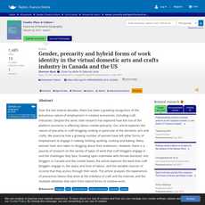 1. This article examines the intersection of gender, precarity and hybrid forms of work identity in the virtual domestic arts and crafts industry in Canada and the US.