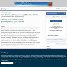 1. This article presents a three-dimensional formulation of rigid-flexible multibody systems with flexible beam elements.