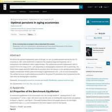 The article provides a comprehensive analysis of optimal pensions in aging economies, extending upon previous research by İmrohoroğlu, İmrohoroğlu, and Joines (1999). The authors account for a more realistic wage distribution, labor supply adjustment due to pension contributions, and income tax distortion when deriving their results. They find an optimal value of the net pension replacement ratio close to zero amounting to 8%, which is robust with respect to the specification of preferences but sensitive with respect to the value of the Frisch labor supply elasticity.