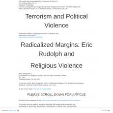 1. This article examines the rhetoric and actions of Eric Rudolph, an anti-abortion bomber, in order to question the centrality of religion when it comes to religious violence.
