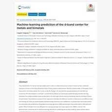 The article provides a detailed overview of the use of machine learning methods to predict the d-band center for metals and bimetals, which is an important factor in understanding activity trends in metal-surface-catalyzed reactions. The authors provide a comprehensive description of the methodology used, including the selection of descriptors and evaluation of predictive accuracy using statistical cross validations. The article also includes a thorough discussion on potential applications of machine learning methods in catalysis, which is useful for readers who are unfamiliar with this field.