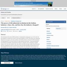 The article provides a comprehensive overview of the role of 4th Industrial Revolution (4IR) in the global fashion industry. It begins with a brief overview of former industrial revolutions and their impact on the industry before discussing major challenges in the industry and proposing three prime industry and consumer concerns (i.e., productivity, environmental sustainability, and hyper-personalization). The article then examines what, why, and how these technologies are being applied to address these concerns.