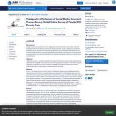 1. This article examines the therapeutic effects of social media on chronic pain patients through a qualitative analysis of an online survey.