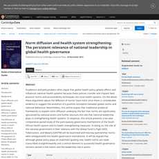 1. Global health policy has a positive correlation with national health systems, but top-down diffusion overlooks the relevance of national leadership in producing successful health outcomes.
