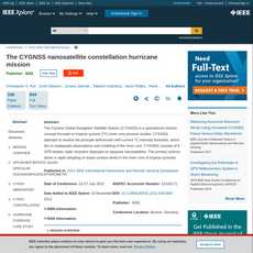 The article provides an overview of the CYGNSS nanosatellite constellation hurricane mission, discussing its potential benefits in improving tropical cyclone track and intensity forecasts. The article is well-written and provides detailed information on the mission's design, including its use of GNSS bistatic ocean surface scatterometry for all-weather performance, as well as a dense constellation of nanosatellites for improved spatial and temporal sampling. The article also discusses a proposed low-cost spacecraft and GNSS receiver design, with compromises made in order to keep the system small and affordable.