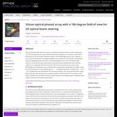 1. This article discusses the development of a silicon optical phased array with a 180-degree field of view for 2D optical beam steering.