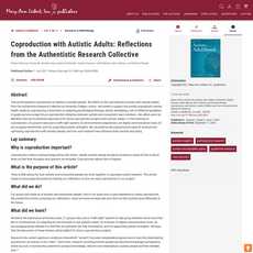 1. This article discusses the reflections of a research collective made up of seven autistic adults and one non-autistic adult on their experience with coproduction.