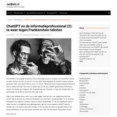 The article “ChatGPT en de informatieprofessional (2): tegen Frankenstein-teksten – JanBletz.nl” is written by Jan Bletz and published on his website janbletz.nl. The article discusses the potential implications of ChatGPT for the spread of (dis)information online, arguing that it could lead to an increase in unreliable texts being generated by users who want to appear knowledgeable or attract attention.
