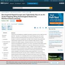 1. This article discusses the use of reinforcement learning to enable animal-like maneuverability on an at-scale, dual-motor actuated flapping wing hummingbird robot.