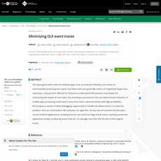 3. Evaluation of the algorithm on two sets of commercial and open-source Android applications shows that it can minimize large event traces reaching a particular application activity, producing traces that are, on average, less than 2% the size of the original traces.