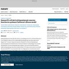1. Human iPS cell-derived dopaminergic neurons can be induced from both healthy individuals and patients with Parkinson's Disease, and when grafted into the striatum of MPTP-treated cynomolgus monkeys, can improve impaired behaviour.