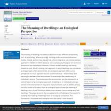 3. This paper presents a conceptual and methodological framework for studying the meaning of dwellings from an ecological perspective, illustrated with examples from the author's own research.