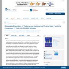 The article “Dissociable Disruptions in Thalamic and Hippocampal Resting-State Functional Connectivity in Youth with 22q11.2 Deletions” by Amy Lin et al., published in the Journal of Neuroscience, provides an interesting insight into the neural mechanisms underlying developmental neuropsychiatric conditions such as schizophrenia and autism spectrum disorder (ASD). The authors investigate the pattern of thalamic and hippocampal neural alterations in a genetic risk model based on a copy number variant (CNV) that disrupts neural function broadly, using resting-state fMRI data from 42 youth with 22q11DS and 39 demographically matched healthy controls.