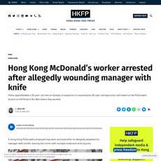1. A McDonald's worker in Hong Kong has been arrested for allegedly attacking his manager with a knife, leaving the victim with multiple head and neck injuries.