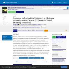 3. This paper reports on a validation study of the Chinese version of the HEIghten Critical Thinking (CT) assessment, examining validity evidence based on the test’s internal structure and its relation to other variables, as well as any potential effects of test delivery mode on test performance.