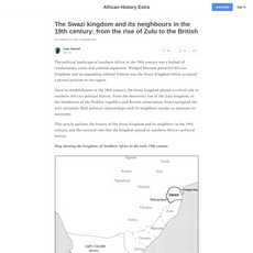 This article provides an overview of the political landscape of southern Africa during the 19th century, focusing on the pivotal role that the Swazi Kingdom played in maintaining its autonomy amidst powerful African kingdoms and colonial expansion. The article is generally reliable, providing a comprehensive overview of key events such as Ndwandwe's collapse, King Sobhuza's diplomatic efforts with Shaka and Dingane, and Mswati's succession crisis. However, there are some issues with trustworthiness and reliability that should be noted.