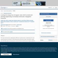 1. Researchers have developed a molecular packaging engineering approach using multi-molecular conjugation to reduce energy losses in organic solar cells.