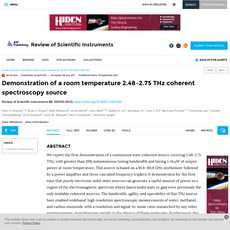 1. This article presents a continuous wave coherent source covering 2.48–2.75 THz with greater than 10% instantaneous tuning bandwidth and 1–14 μW of output power at room temperature.