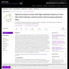 1. 提出了基于光纤Mach-Zehnder干涉仪和微波光子滤波器的高分辨率光学曲率传感器。