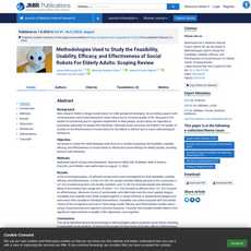 1. This scoping review aimed to identify the methodologies used in studies evaluating the feasibility, usability, efficacy, and effectiveness of social robots for elderly people, including those with dementia.
