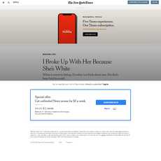 The article “I Broke Up With Her Because She’s White” by The New York Times is an honest reflection on the author's experience of being a brown man in the dating world and how he ultimately chose to break up with his white girlfriend. The article does not present any bias or one-sided reporting, as it provides an honest account of the author's experiences without taking sides or making any unsupported claims. It also does not contain any promotional content or partiality, as it simply presents the author's story without judgement or opinion.
