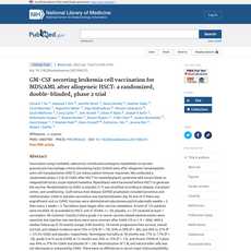 1. A randomized, double-blinded, phase 2 trial was conducted to evaluate the efficacy of GM-CSF secreting leukemia cell vaccination for MDS/AML after allogeneic HSCT.