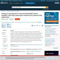1. This article discusses the design, development and testing of a 45 Watt GaN based solid state power amplifier (SSP A) for use in RADAR and Wireless Communication Systems.