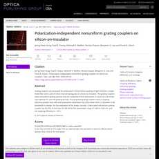 1. This article discusses the development of a polarization-independent grating coupler on a silicon substrate.