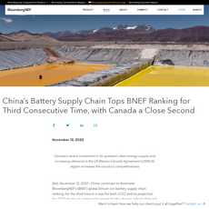 1. China continues to dominate BloombergNEF’s global lithium-ion battery supply chain ranking for the third time in a row, due to its support for electric vehicle demand and investments in raw materials.