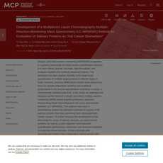 1. This study evaluated the analytical performance of a multiple reaction monitoring (MRM)-based targeted proteomics approach incorporating liquid chromatography with mass spectrometry detection (LC-MRM/MS) for quantifying salivary proteins as potential biomarkers for oral cancer.