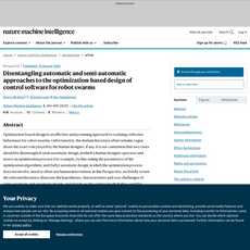 The article “Disentangling Automatic and Semi-Automatic Approaches to the Optimization-Based Design of Control Software for Robot Swarms” provides an overview of optimization based methods for designing robot swarms. The article is well written and provides a comprehensive overview of the topic, with references to relevant literature throughout.