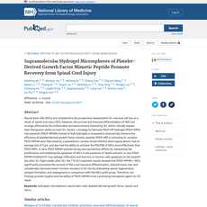 1. This article discusses the use of platelet-derived growth factor (PDGF)-mimetic peptide hydrogel microspheres (PDGF-MPHM) to promote spinal cord injury (SCI) recovery.