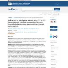 1. This systematic review and meta-analysis investigated the incidence and risk factors of vertebral re-fracture after PVP/PKP for osteoporotic vertebral compression fractures (OVCF) in Eastern Asia.
